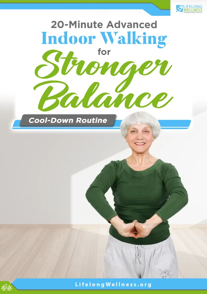 CLICK HERE to download a copy of the 20-Minute Advanced Indoor Walking for Stronger Balance – Cooldown Routine (PDF)