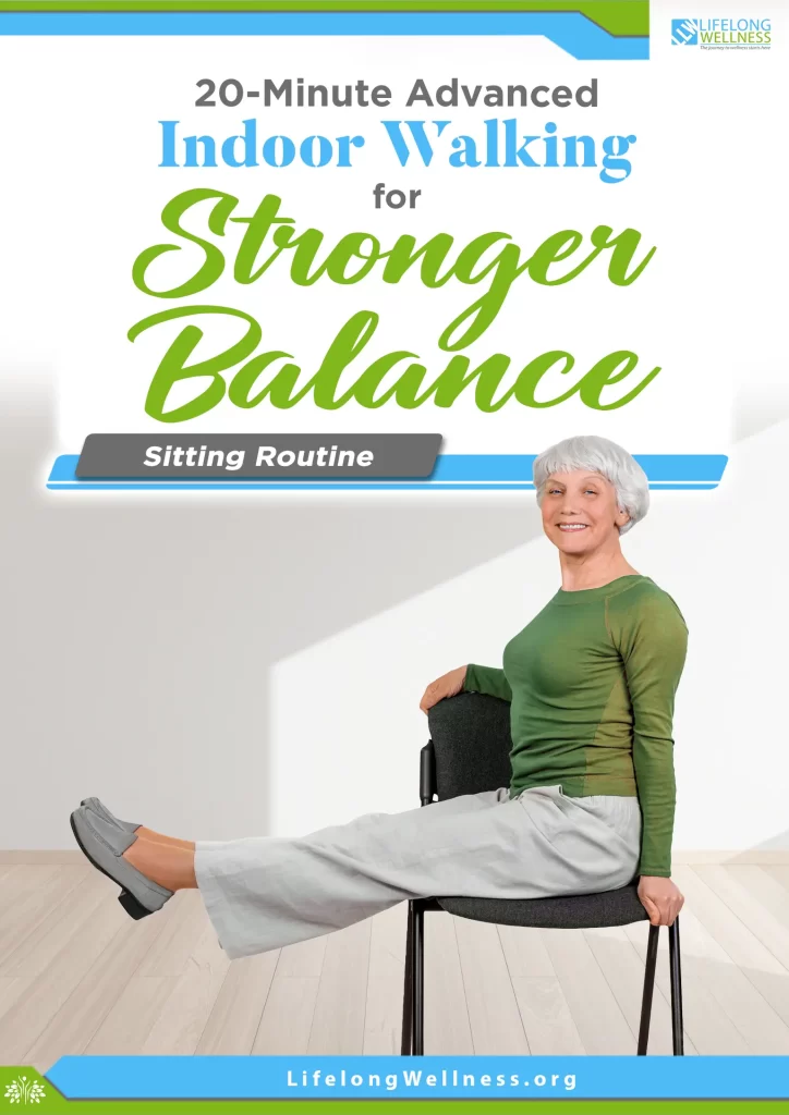CLICK HERE to download a copy of the 20-Minute Advanced Indoor Walking for Stronger Balance – Sitting Routine (PDF)