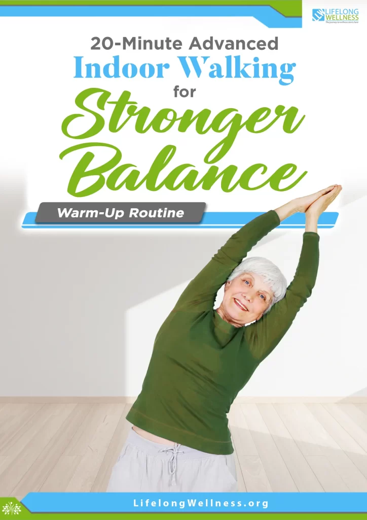 CLICK HERE to download a copy of the 20-Minute Advanced Indoor Walking for Stronger Balance – Warm-up Routine (PDF)