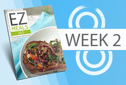 Start here! Download your Quick Start Cookbook and kick off your EZ Meals 365 program with easy healthy recipes, weekly meal plans and shopping lists for a full year.